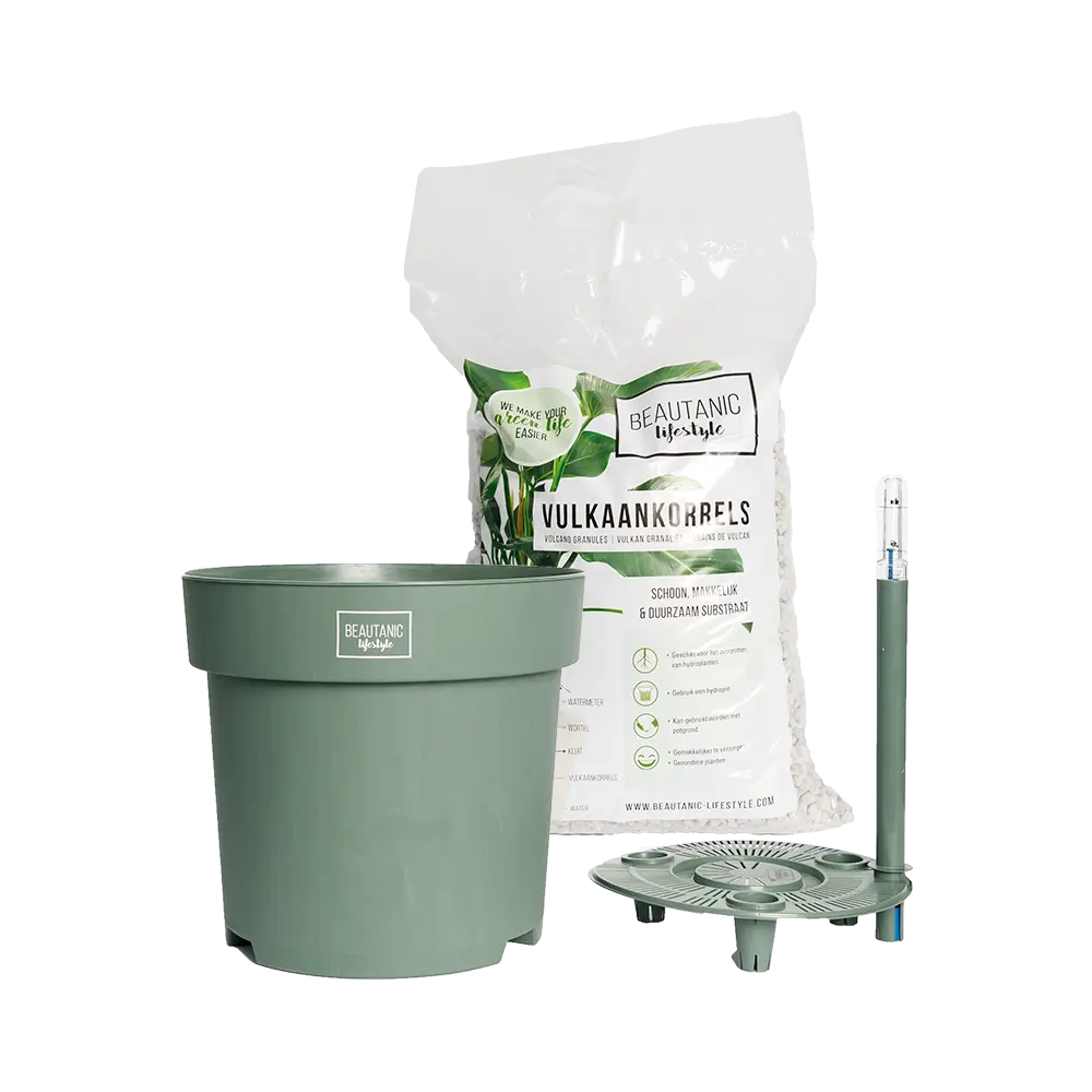 Zet in 6 makkelijke stappen je plant over naar hydrocultuur. Door de ingebouwde watermeter hoeft je nooit meer af te vragen of je water moet geven. Als je de Hydrokit in huis gebruikt kan je de waterstopper laten zitten waardoor de Hydrokit volledig waterdicht is. Bij buiten gebruik moet je de waterstopper er uit halen. Het is belangrijk dat je de plant speciale voeding geeft om hem gezond en sterk te houden. Hiervoor adviseren wij onze Beautanic Superfood.